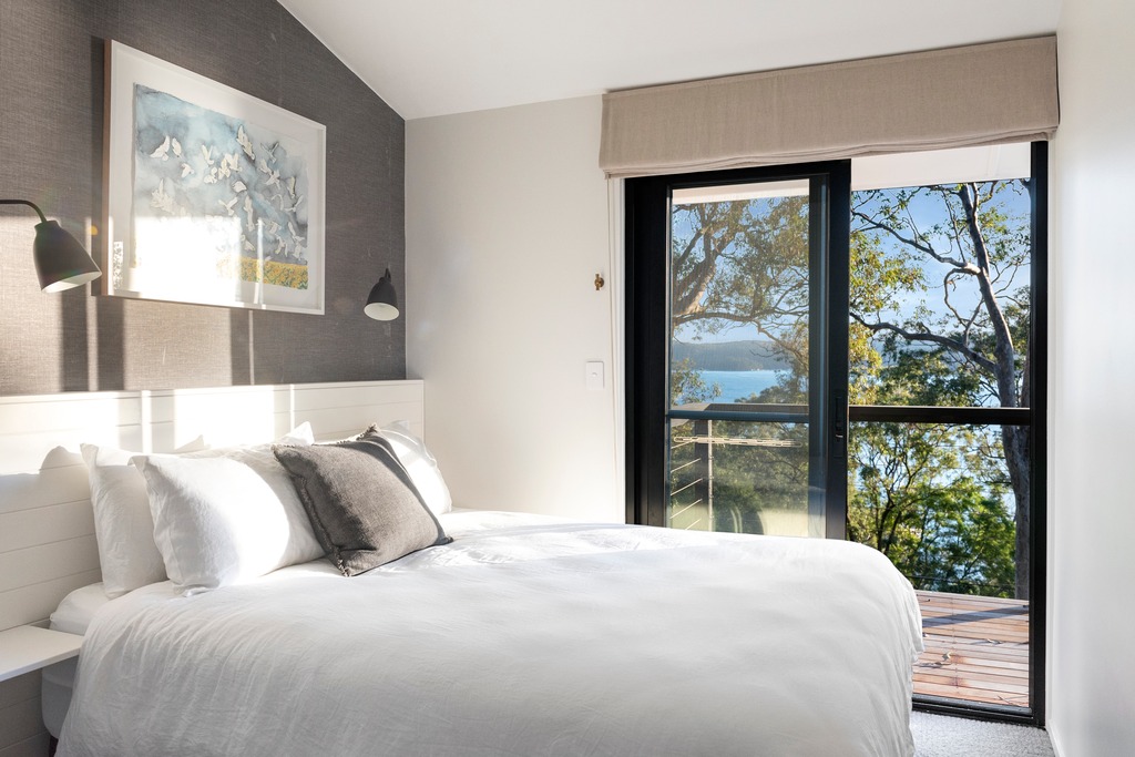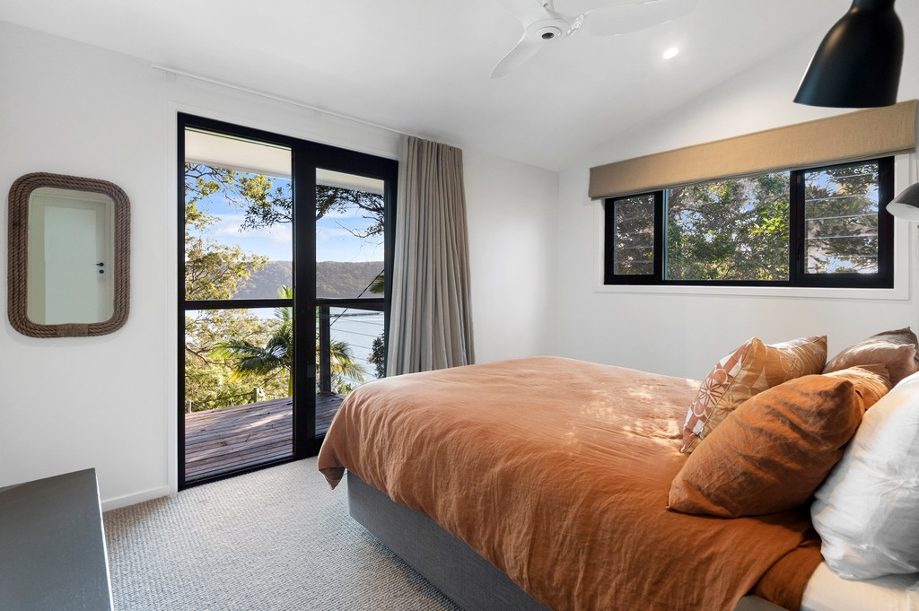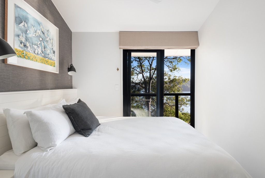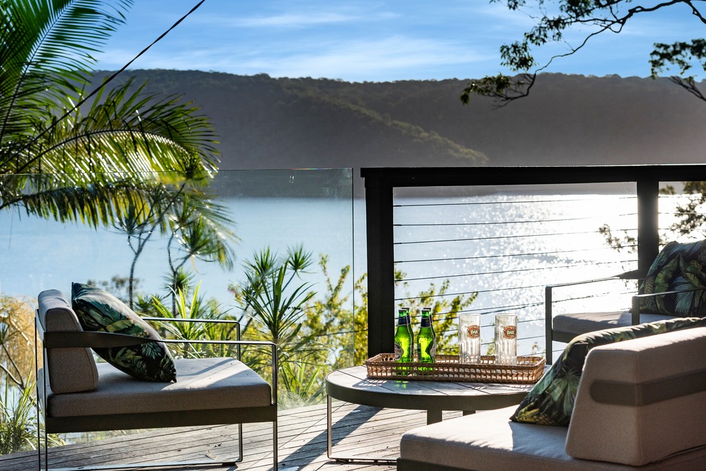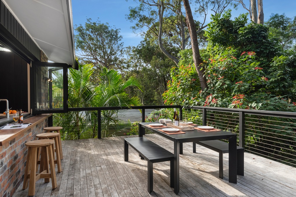 Harry’s is a recently renovated Mid-Century Modern Pettit and Sevitt home nestling onto the crest of Stokes Point. Its elevated position welcomes both refreshing nor’ easter breezes and morning sunshine. Its views westward the wilds of West Head National Park beckon you to explore its walks and secluded beaches a mere kayak or short ferry trip away. Architectural renovations have invited the outside into our home so you can capture the moment of every day. Stretch out on Harry’s numerous and generous decks opening off spacious living areas, find a book to devour in our cosy den, concoct your favourite aperitif from Harry’s bar, cook up a storm in our swish new kitchen then drift into sleep on our premium plush beds!
