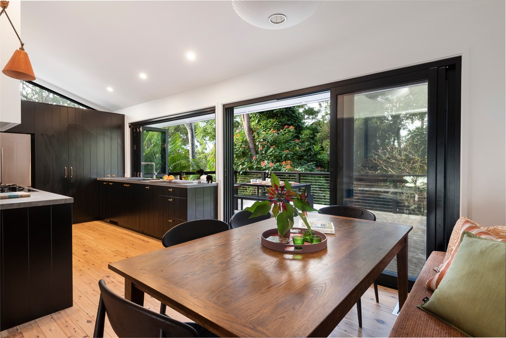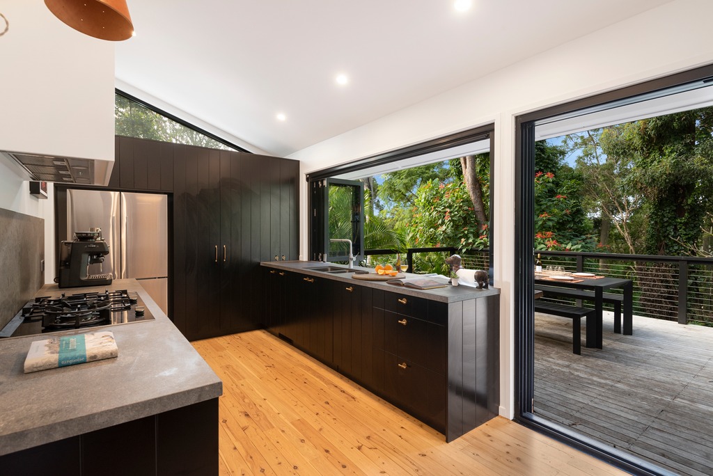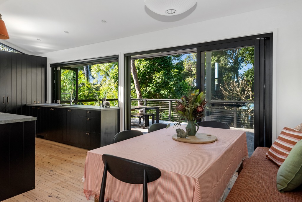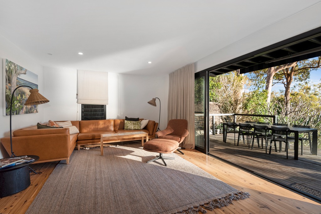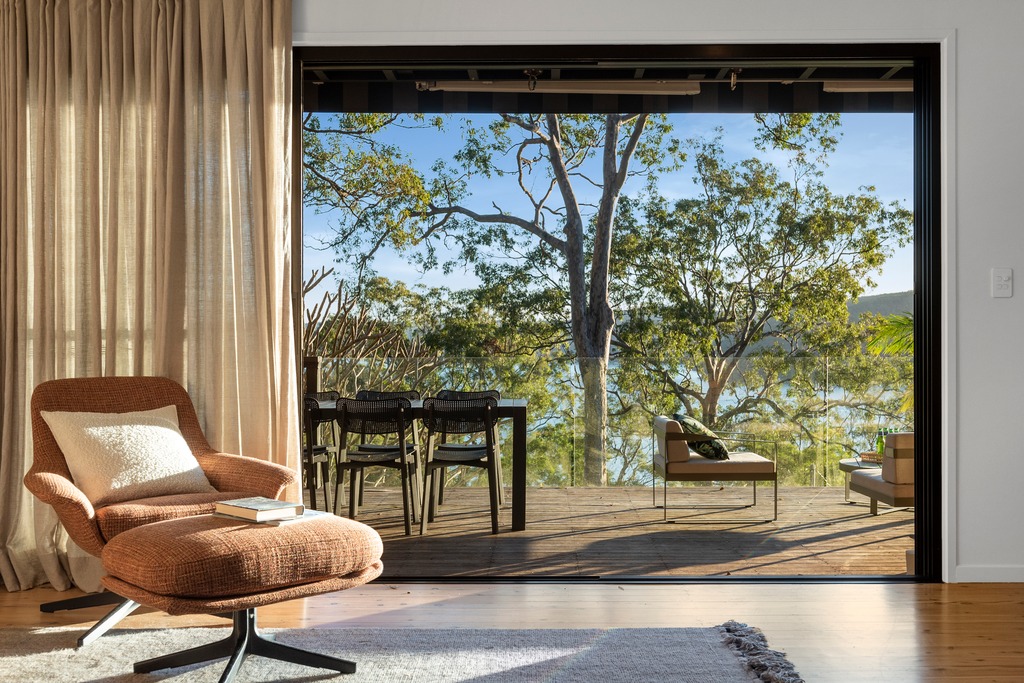 Harry’s is a recently renovated Mid-Century Modern Pettit and Sevitt home nestling onto the crest of Stokes Point. Its elevated position welcomes both refreshing nor’ easter breezes and morning sunshine. Its views westward the wilds of West Head National Park beckon you to explore its walks and secluded beaches a mere kayak or short ferry trip away. Architectural renovations have invited the outside into our home so you can capture the moment of every day. Stretch out on Harry’s numerous and generous decks opening off spacious living areas, find a book to devour in our cosy den, concoct your favourite aperitif from Harry’s bar, cook up a storm in our swish new kitchen then drift into sleep on our premium plush beds!