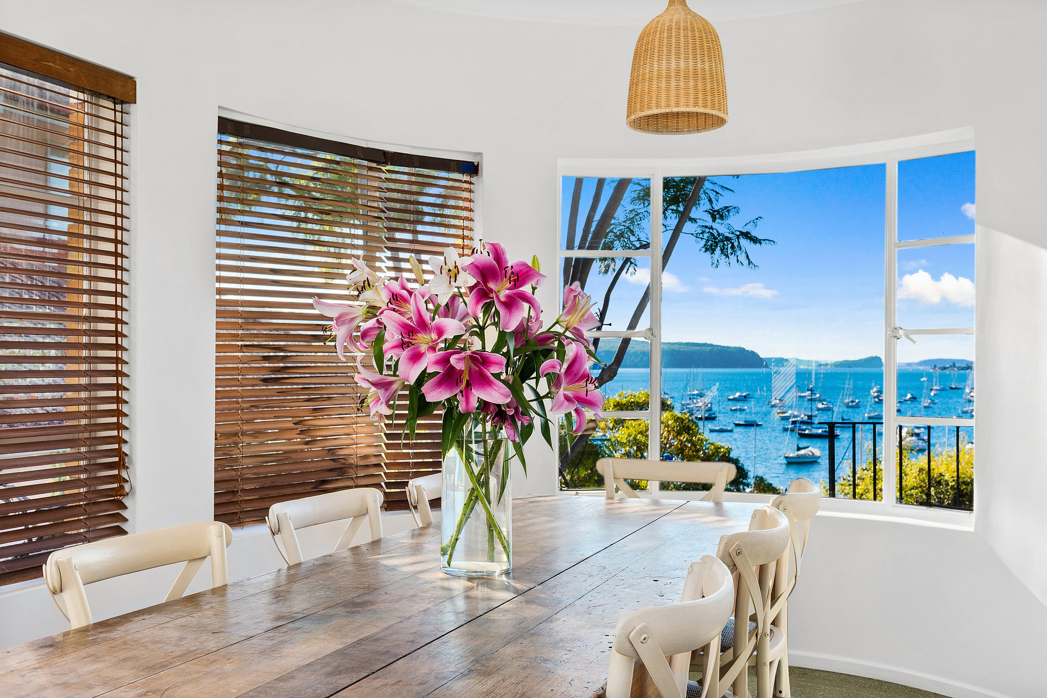 Pittwater Jewel is perfectly positioned on a north facing beachfront site with magnificent Pittwater views north to Lion Island and an established terraced garden with direct access to the sandy shores of Clareville Beach